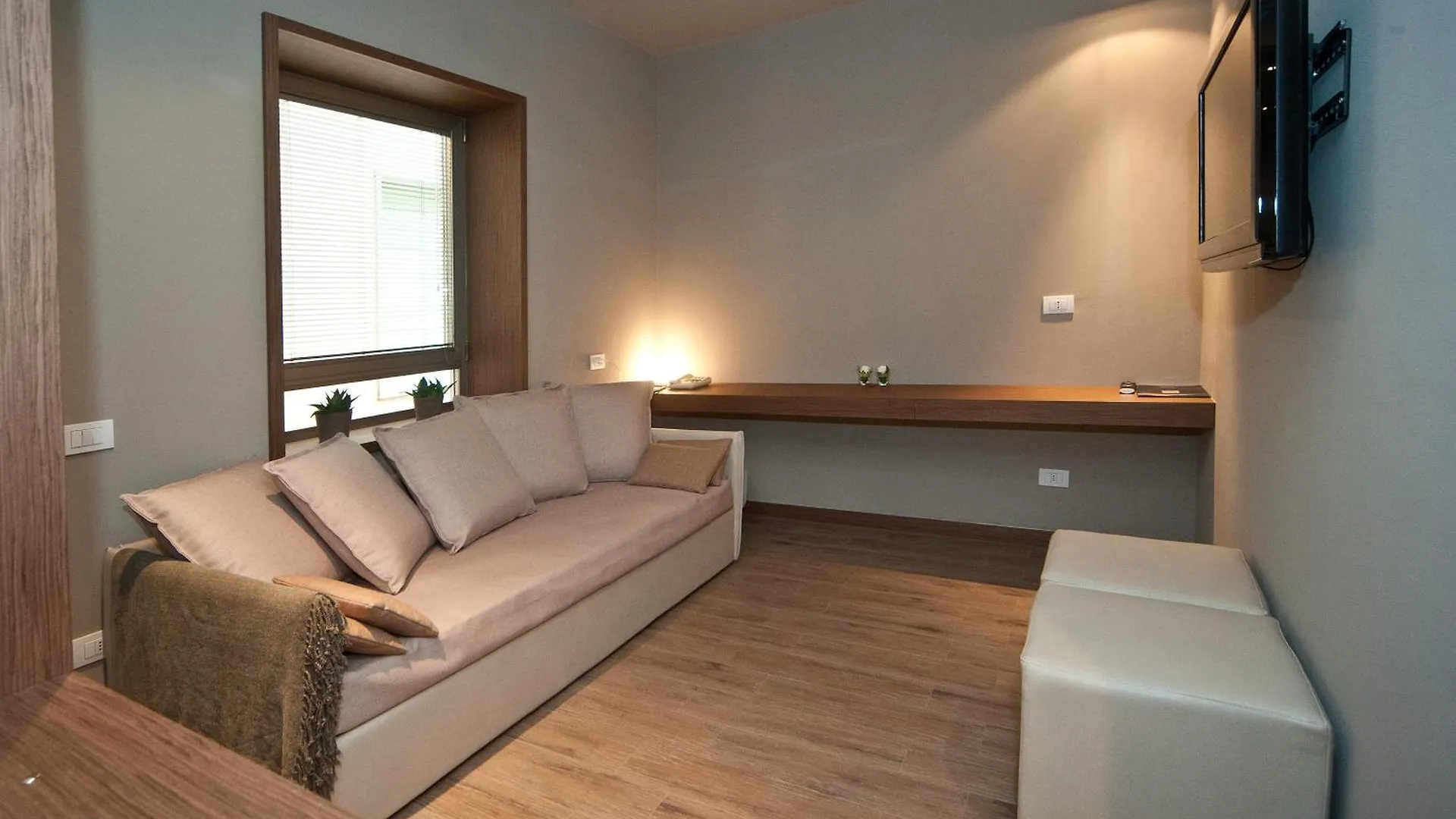 Il y a 16 chambres comprenant un patio et un balcon. Certaines d'entre elles offrent un climatiseur individuel, un fer et une planche à repasser ainsi qu'un mini-frigo bar et une cafetière/théière. Quelques chambres comprennent des salles de bain modernes équipées d'un sèche-cheveux et un bonnet de douche. De plus, suite junior a un intérieur de style moderne et accueille les clients dans une atmosphère calme.